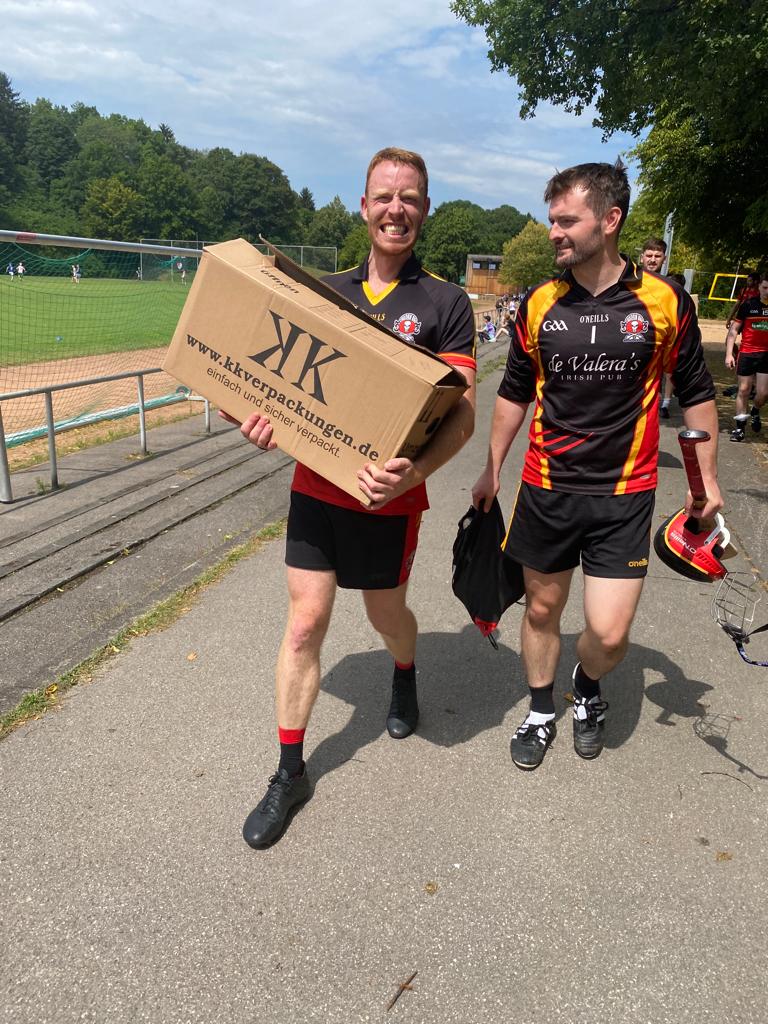 Overall the day was a very enjoyable and well-run tournament by Munich, so congrats to them on that. It was great to see so many Belgium players make the journey to play small ball (and drink big pints). A great individual performance from Marcus Cosgrave saw him win the player of the tournament award. Marcus didn’t let man, ball, and hurl go by him in the full back line, so congrats to him and up the Rebels! Soline Whooley collected the trophy for the Camogie pointing out a great team performance. Next up we take the trip to Luxembourg (September 3), where the Hurlers will be looking to go further than last time and Camogie will be aiming to keep up their winning performance.